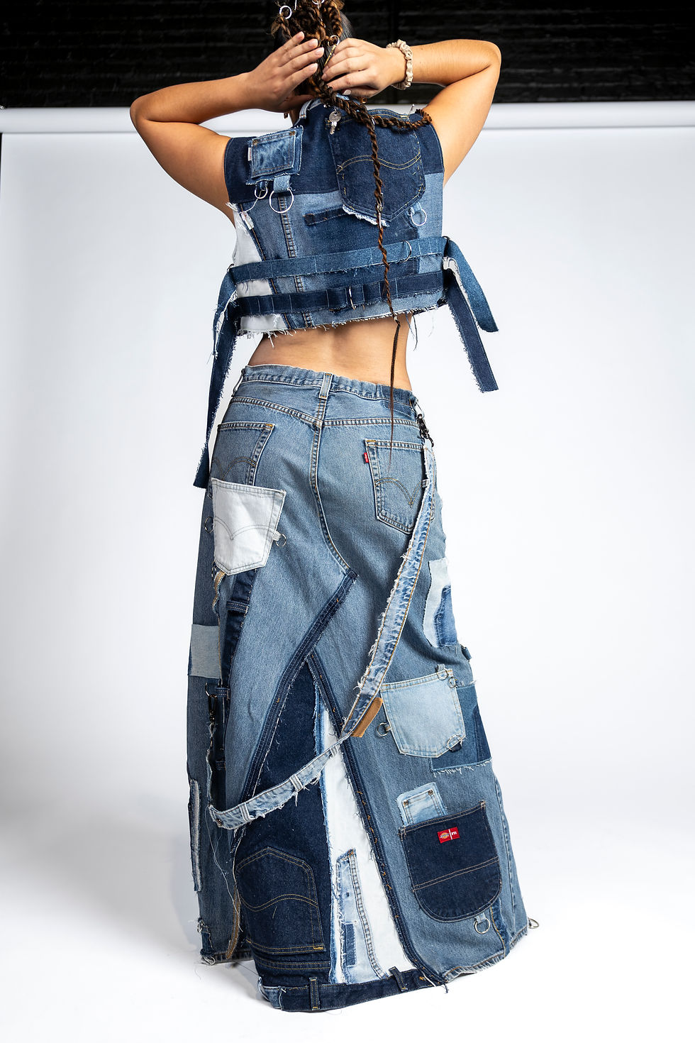 The waistband naturally lays at 34in, we have added an elastic waistband that allows you to cinch the waist smaller